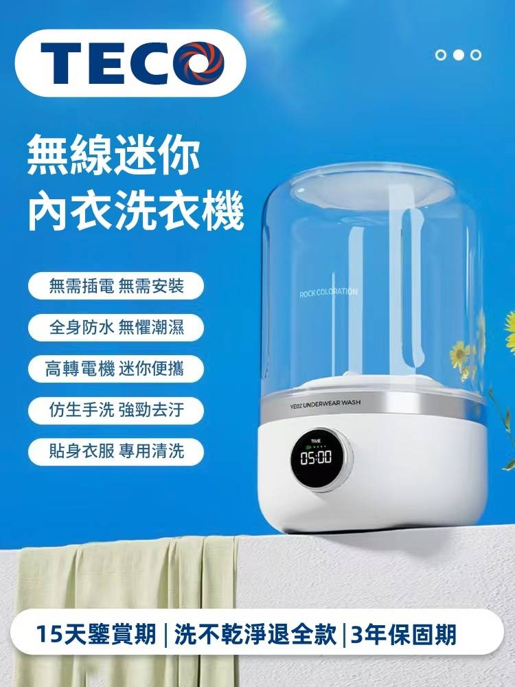 20分鐘前玉如阿姨獨家推出TECO迷你洗衣機,一鍵啟動解放雙手含銀離子持久抑菌,小巧機身功能齊全整機防水防潮防濕 - 內衣內褲分開洗 限時特惠 二入組NT$1990