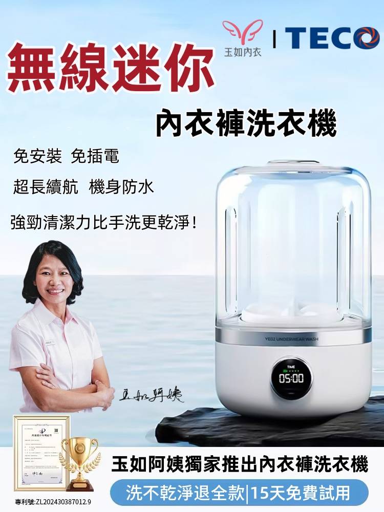 11分鐘前玉如阿姨獨家推出TECO迷你洗衣機,一鍵啟動解放雙手含銀離子持久抑菌,小巧機身功能齊全整機防水防潮防濕 - 內衣內褲分開洗 限時特惠 二入組NT$1990
